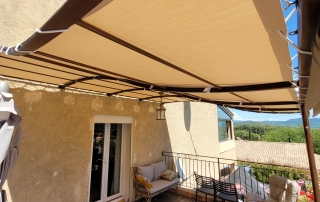 Installation d’un store banne manuel beige dans une maison : une solution élégante et pratique signée EB-Design